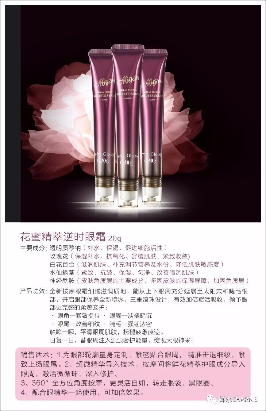 功效:促进皮肤细胞再生、美白补水、弹力紧致、抚平眼部细小皱纹、改善黑眼圈
